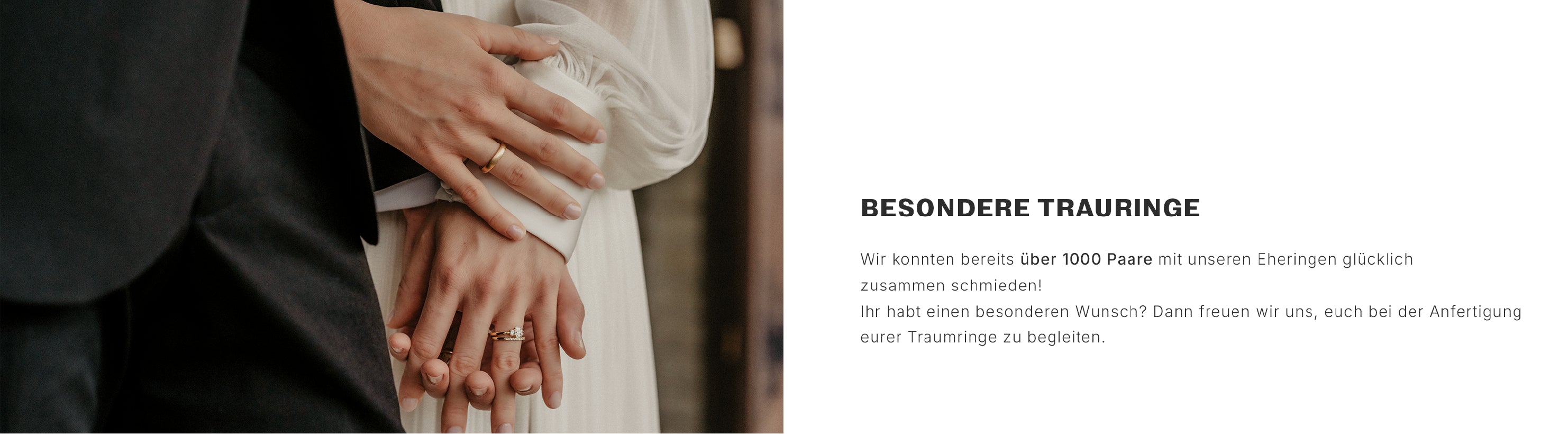 Entdecke einzigartige Handwerkskunst mit unseren exklusiven Eheringen handgefertigt in unserer renommierten Goldschmiede in Deutschland. Jedes Schmuckstück ist eine individuelle Einzelanfertigung, die erst auf deine Anfrage hin entsteht.