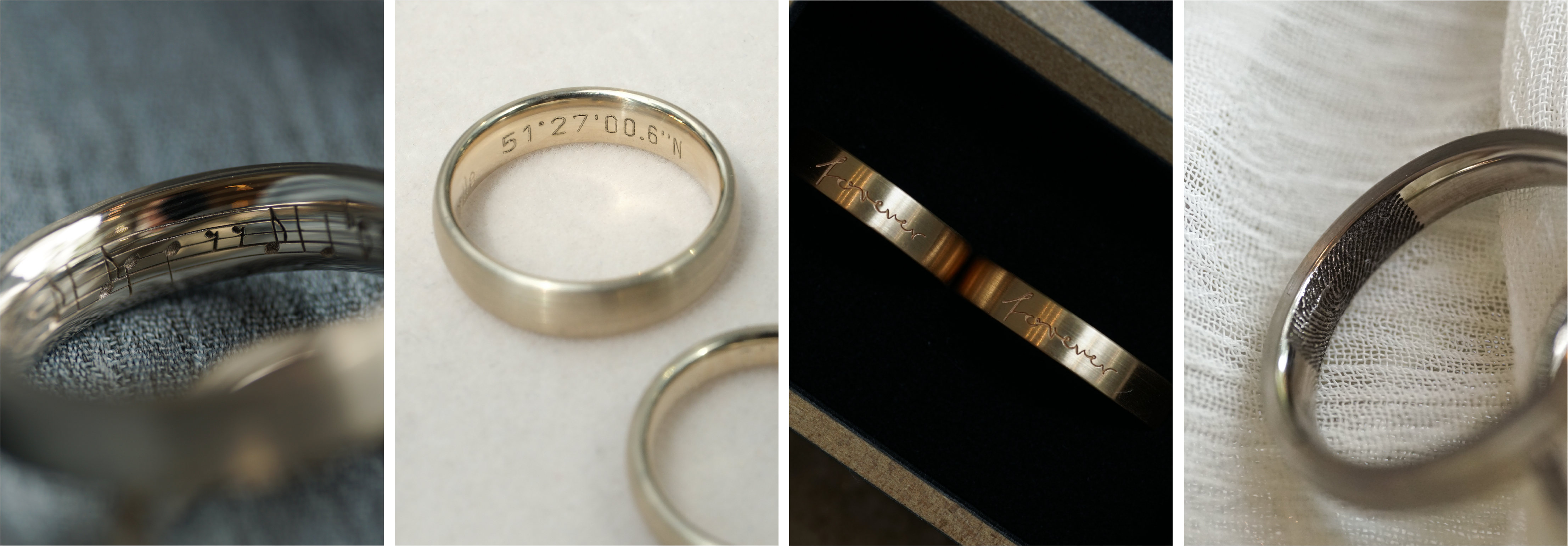 Auch die eigene Handschrift, Fingerabdrücke oder selbst gemalte Symbole können in eure Trauringe als Lasergravur graviert werden.