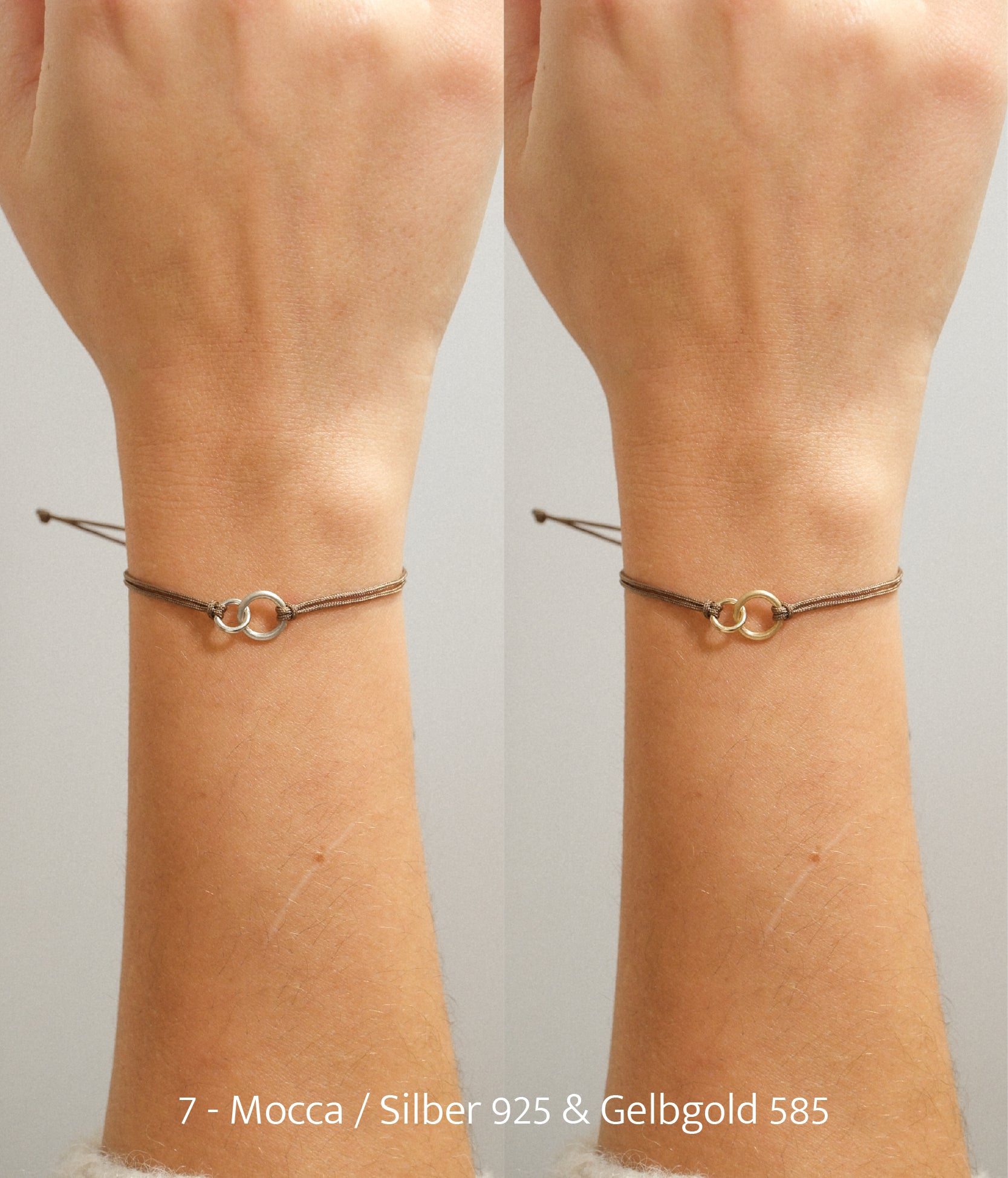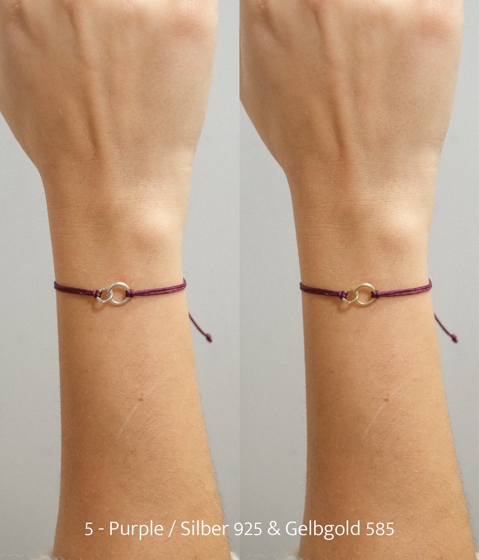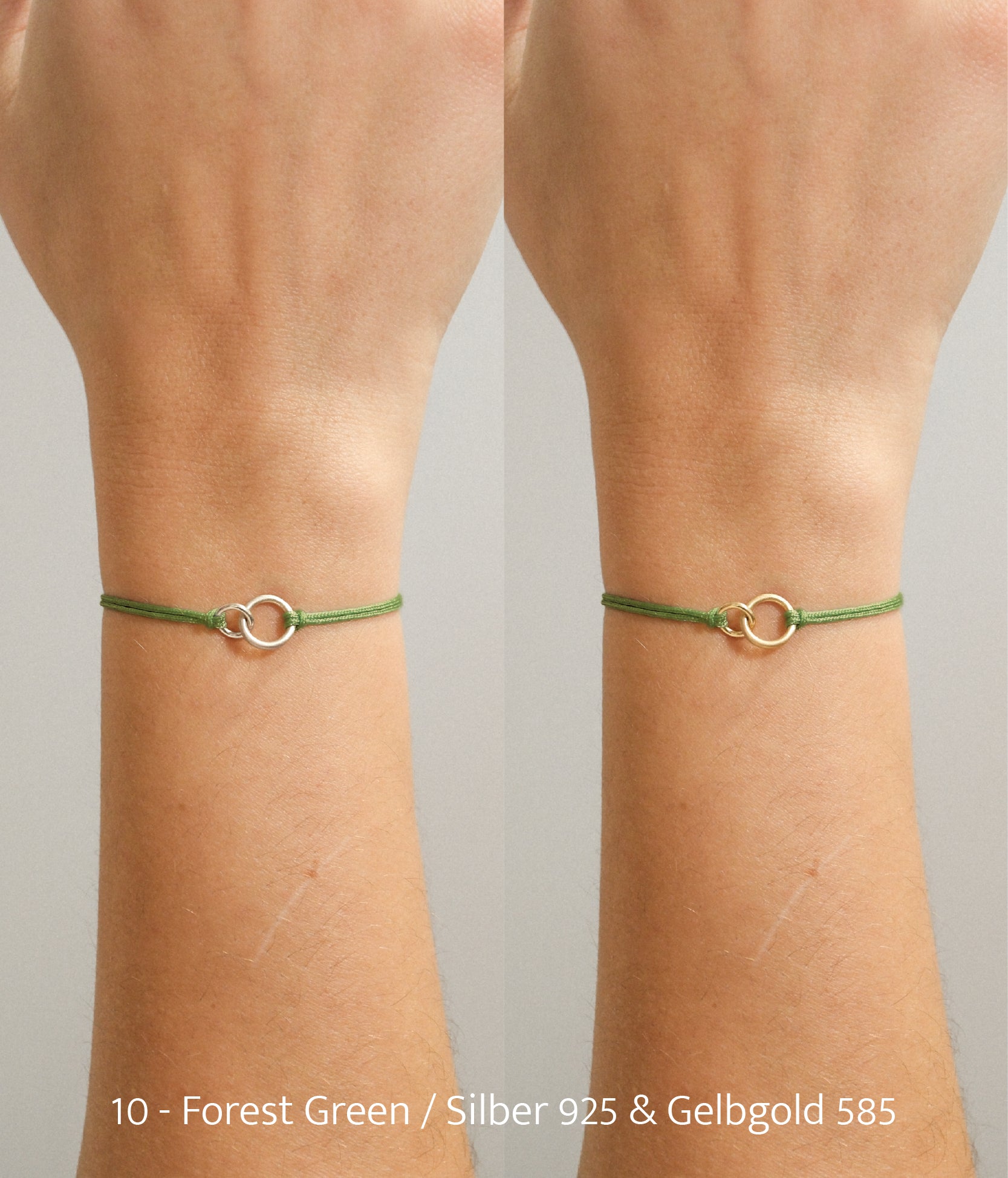 Ob als Freundschaftsarmband, Familienarmband oder als Geschenk zum Jahrestag für deine Partnerin oder deinen Partner – du kannst zwischen zwei Edelmetallen (925/000 recyceltes Silber oder 585/000 recyceltes Gelbgold) und 16 verschiedenen Farben wählen.