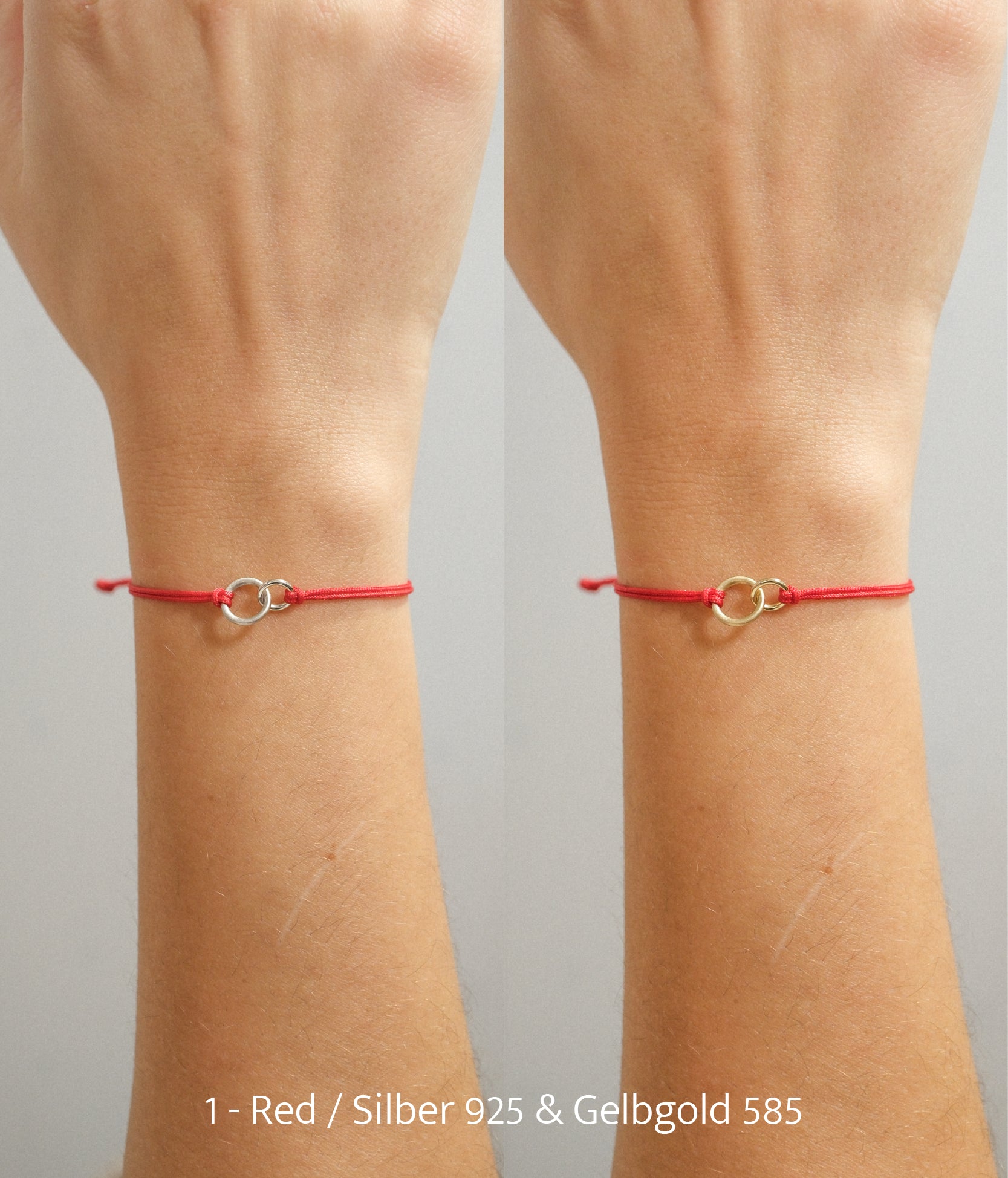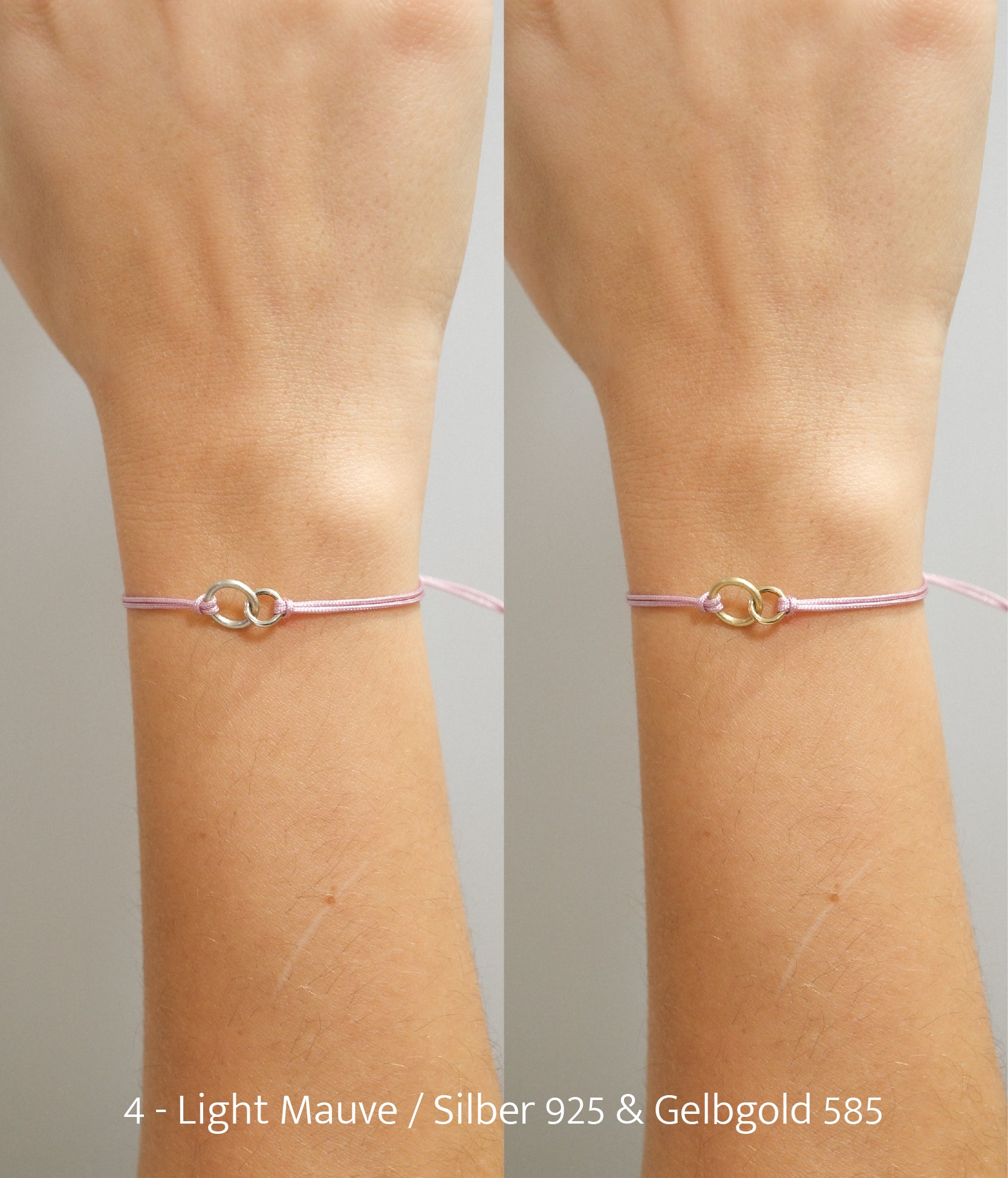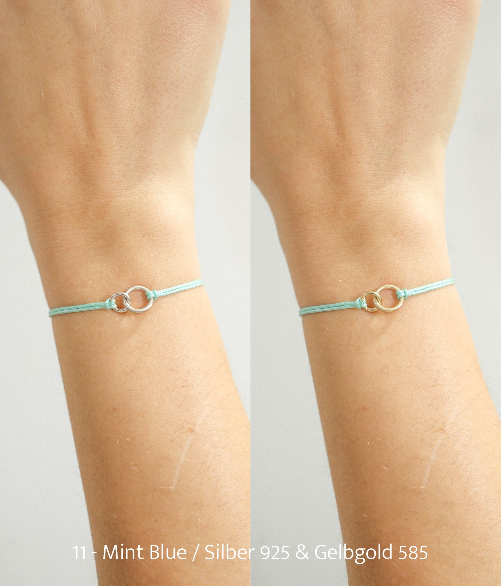 Ob als Freundschaftsarmband, Familienarmband oder als Geschenk zum Jahrestag für deine Partnerin oder deinen Partner – du kannst zwischen zwei Edelmetallen (925/000 recyceltes Silber oder 585/000 recyceltes Gelbgold) und 16 verschiedenen Farben wählen.