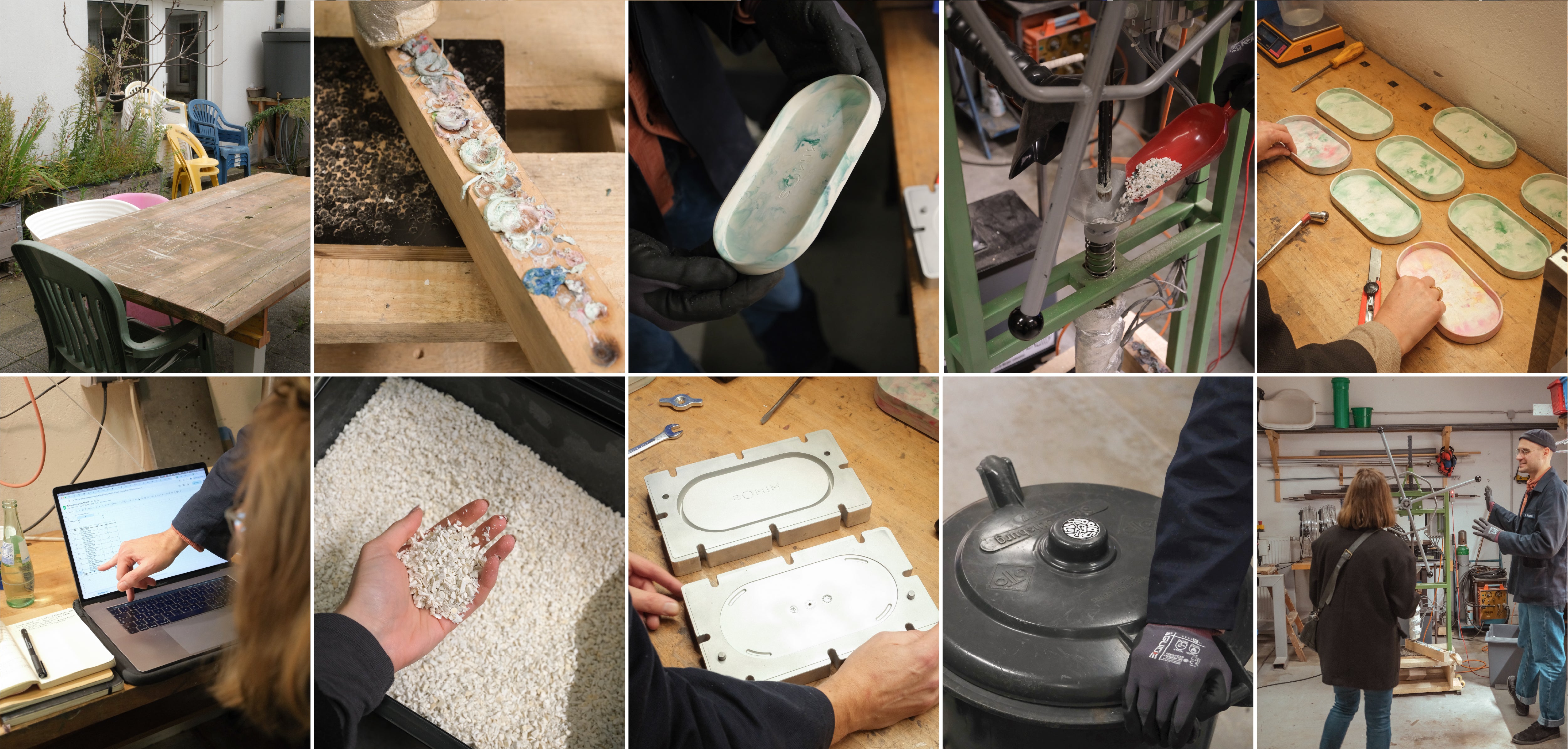 „Wir durften bei dem Herstellungsprozess live dabei sein und waren fasziniert davon, wie aus geschredderten Kunststoffteilchen diese wunderschönen Tabletts gespritzt werden.“